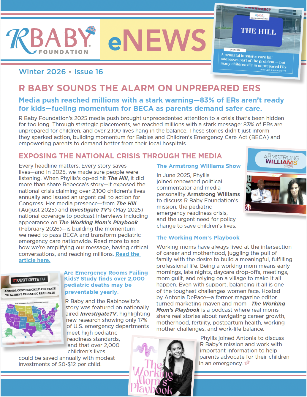 R Baby Foundation is leading the fight to save thousands of young lives by raising awareness, championing transformative national policy changes,and providing essential, life-saving pediatric emergency training across U.S. emergency departments.